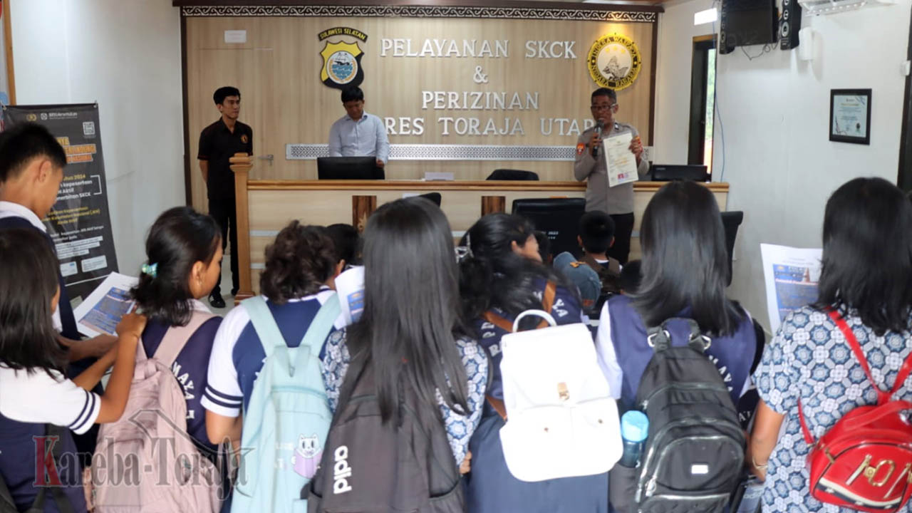 Para pelajar diberikan pengenalan serta mekanisme dalam pembuatan SKCK (Surat Keterangan Catatan Kepolisian) dan Surat Izin Keramaian dibawah naungan Satuan Intelkam. Usai mengenal beberapa jenis pelayanan, para pelajar kembali berkesempatan mengetahui peralatan teramksud alutsista yang digunakan oleh Polres Toraja Utara dalam pelaksanaan tugas.